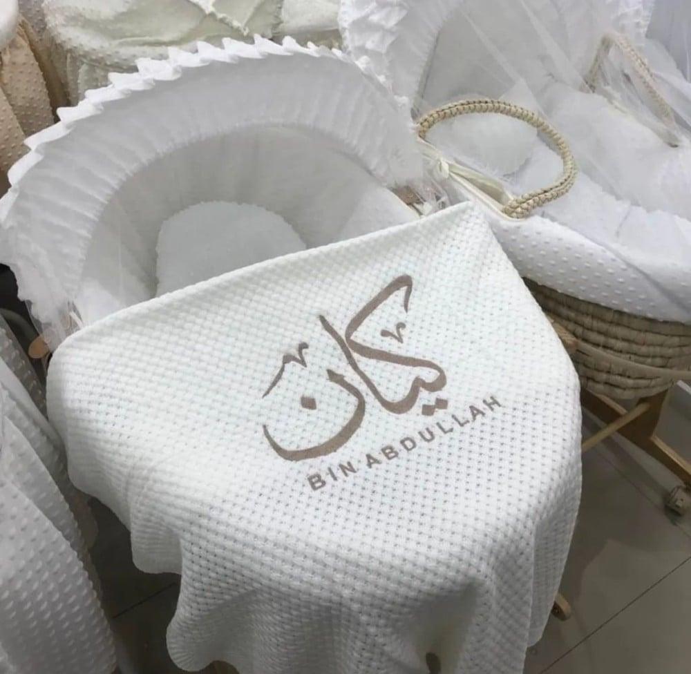 بطانية مواليد بالاسم مصنوعة من مواد ناعمة ومريحة لجسد الطفل الصغير مع مراعاة الجودة والمتانة لضمان استخدام طويل الأمد ومرونة في الاستخدام.