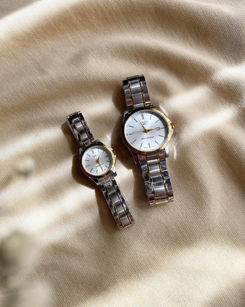 كاسيو كابلز فضي-ذهبي للزوجين، ساعة أنيقة وعملية من الاسطورة ستايل . طقم مثالي للمناسبات. ساعات كاسيو كابلز . توصيل سريع وحفر مجاني.✨