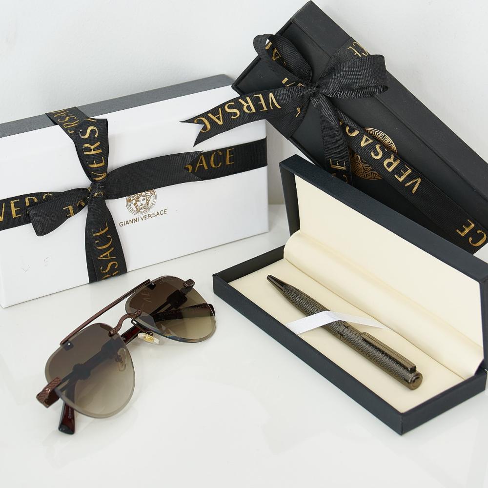 طقم هدايا رجالية، هدية فرزاتشي، طقم نظارة وقلم، هدية فخمة للرجال، هدايا تخرج رجالية، ربطة عنق، كرت إهداء، هدايا ماركات